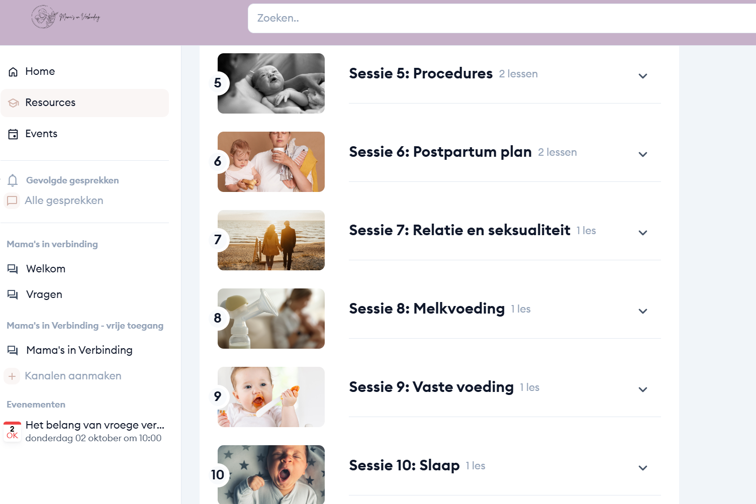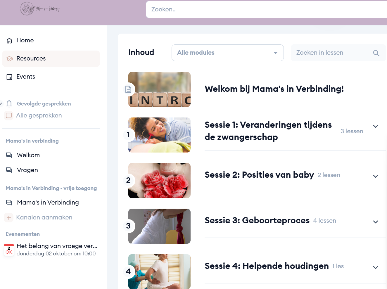 Wanneer je instapt in Mama's in Verbinding, krijg je direct toegang tot: