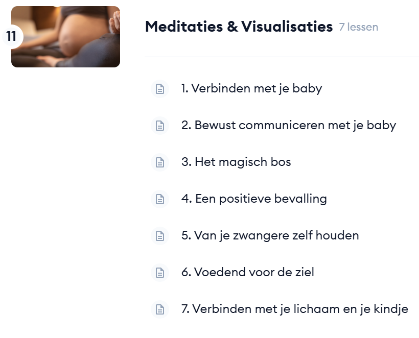 Verbinding en welzijn begint in de moederschoot. We gaan aan de slag met allerlei oefeningen en meditaties om verbinding te maken met je baby in de buik.